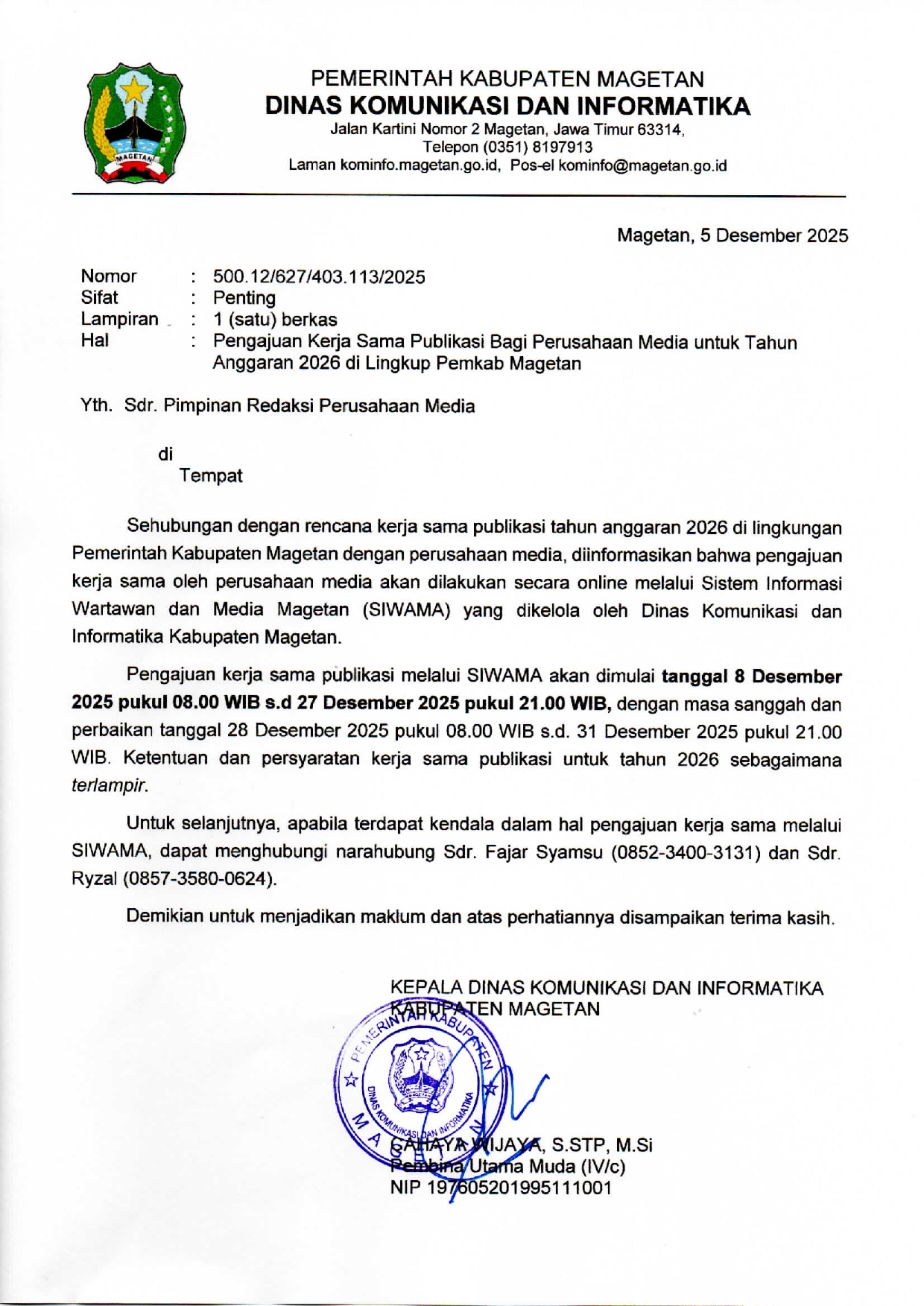Pengumuman Jadwal Verifikasi Pengajuan Kerjasama Perusahaan Media Tahun Anggaran 2026 di Lingkup...