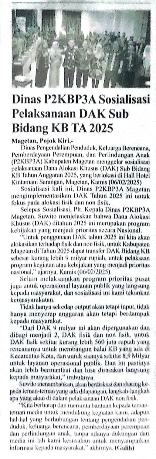 Dinas P2KBP3A Sosialisasi Pelaksanan DAK Sub Bidang KB TA 2025