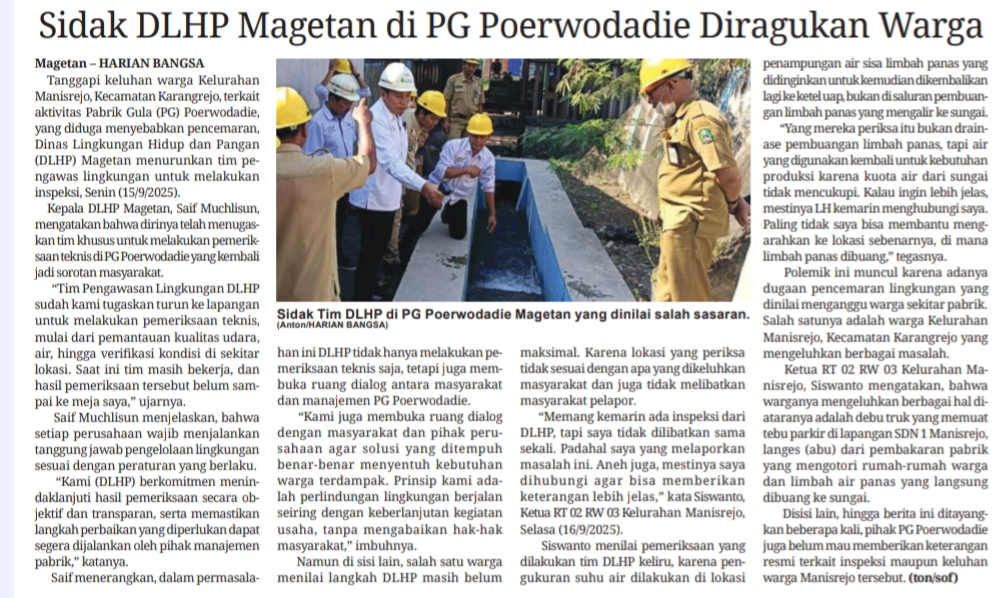 Warga Menilai Sidak DLHP Magetan di PG Poerwodadie Tak Tepat Sasaran